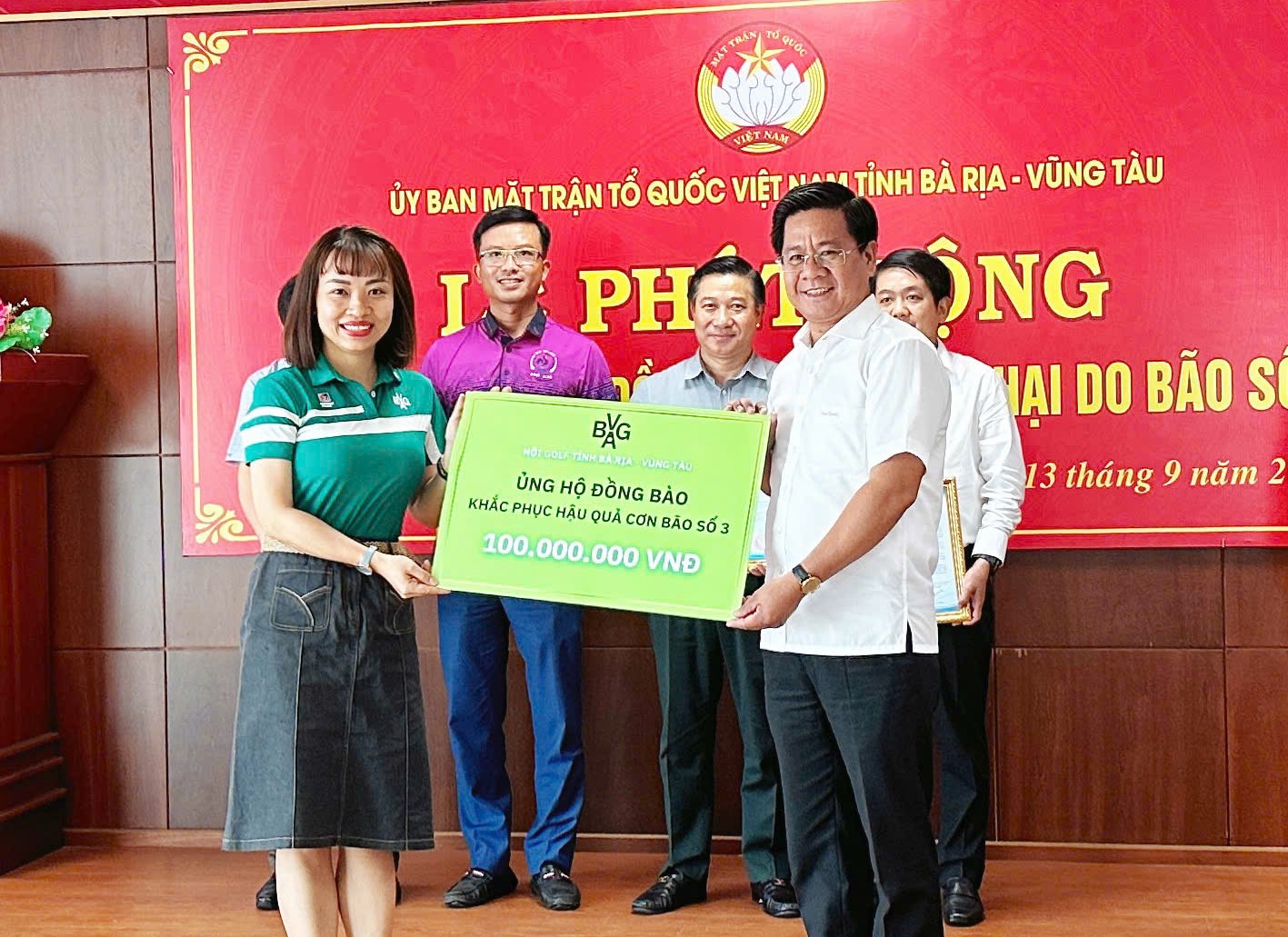HỘI GOLF TỈNH BÀ RỊA VŨNG TÀU BVGA ỦNG HỘ ĐỒNG BÀO 100 TRIỆU ĐỒNG KHẮC PHỤC HẬU QUẢ BÃO SỐ 3